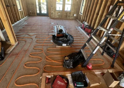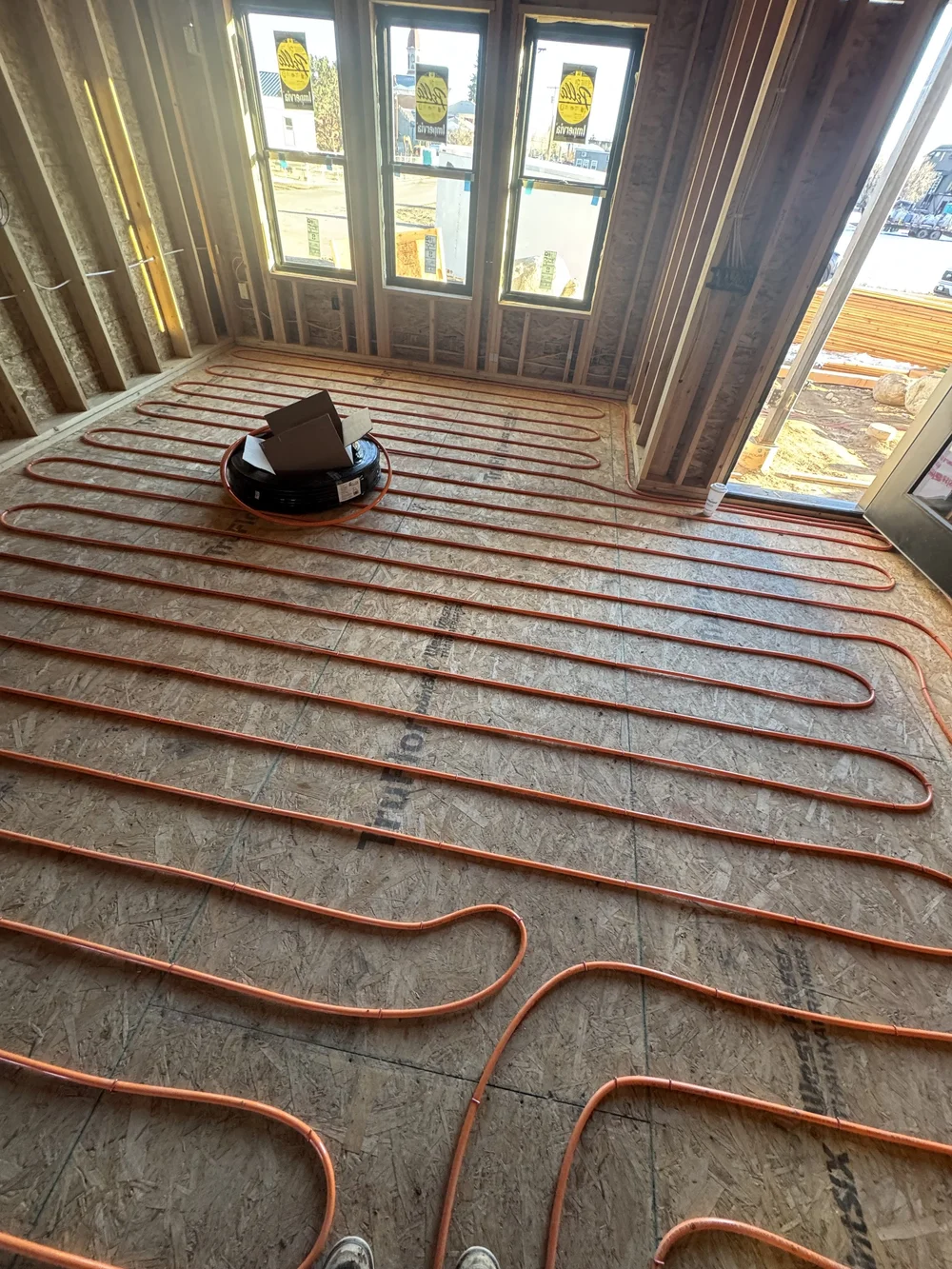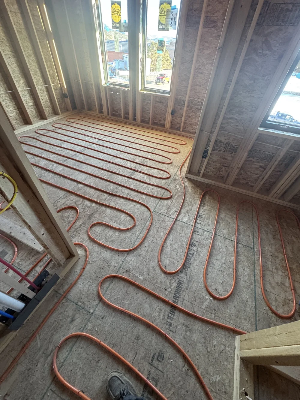 These homes feature gas-powered in-floor radiant heat combined with targeted heat pump air conditioning!