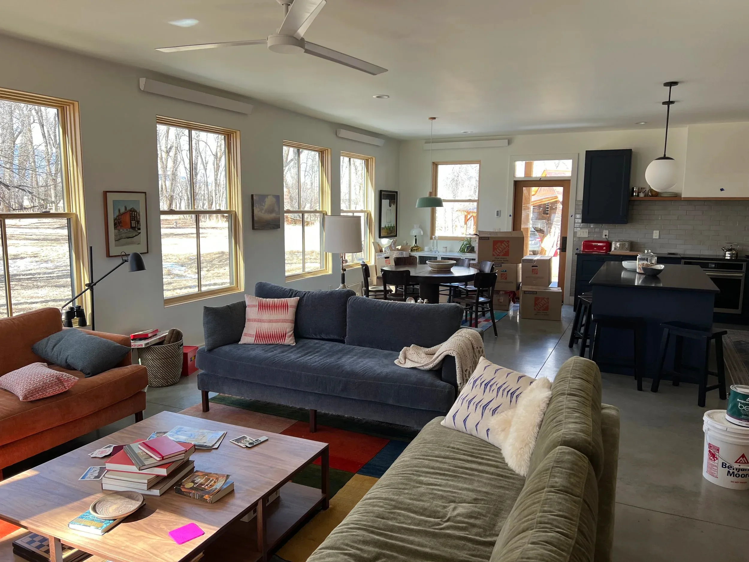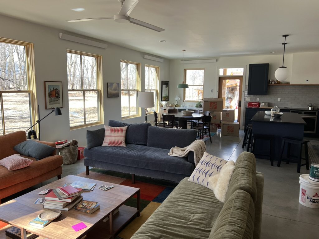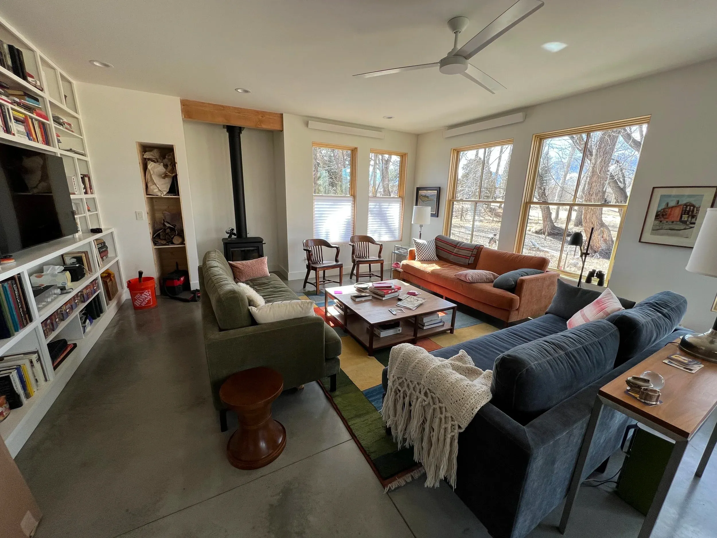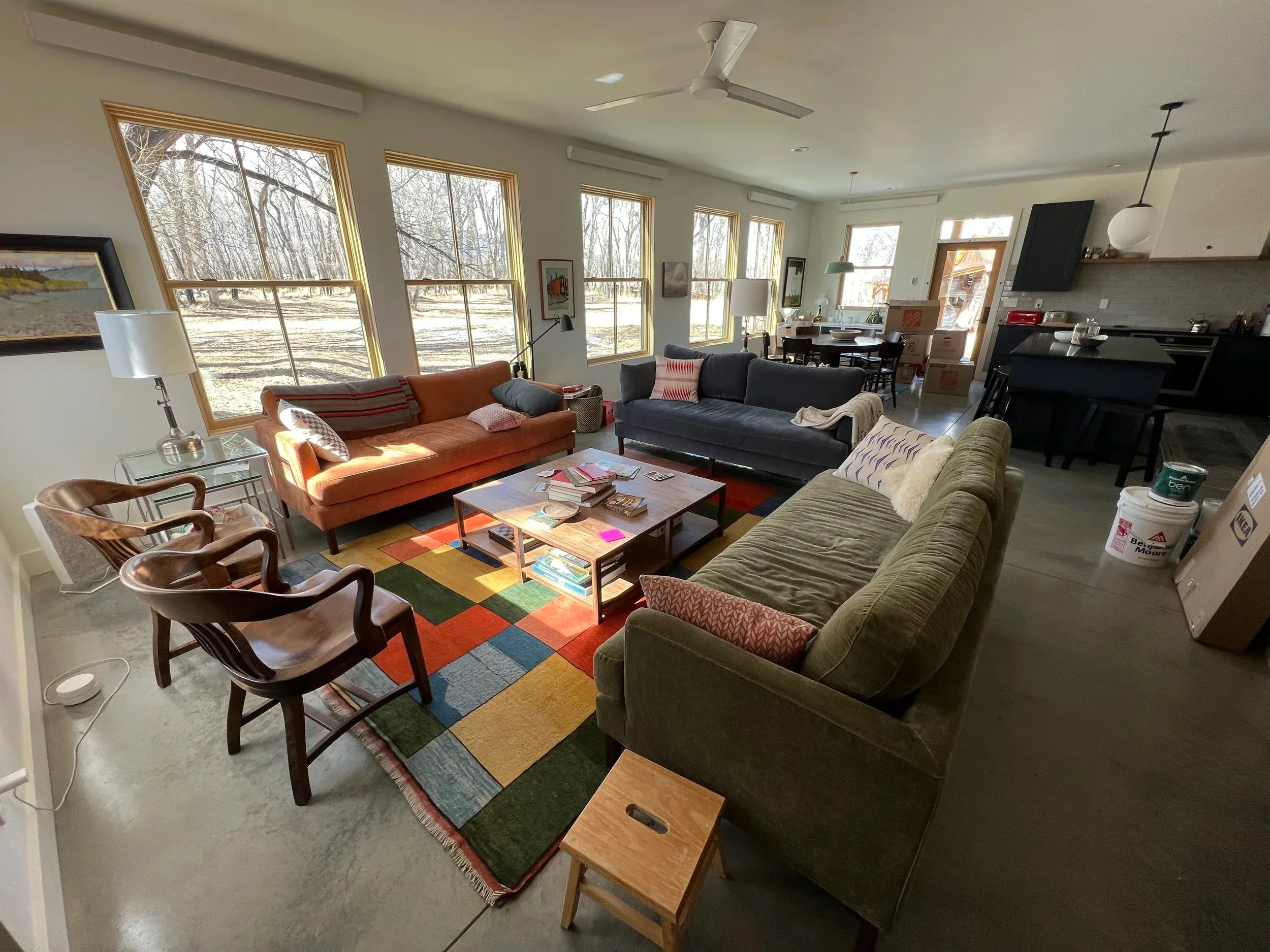 This home is nestled into a beatiful meadow overlooking grass, trees, and fields beyond. Featuring a polished slab-on-grade concrete floor, all-electric design with solar panels, 3 bedrooms, and 2.5 bathrooms. High-grade windows, custom built-ins and tile work brought this home across the finish line.