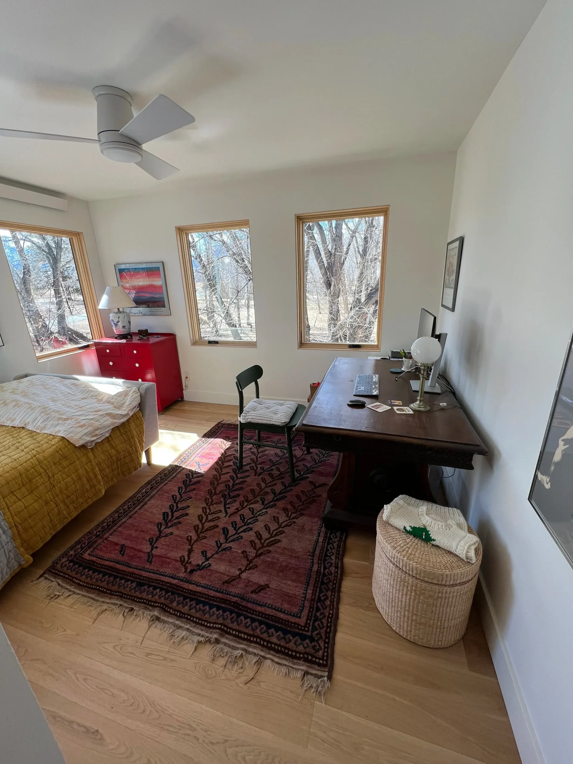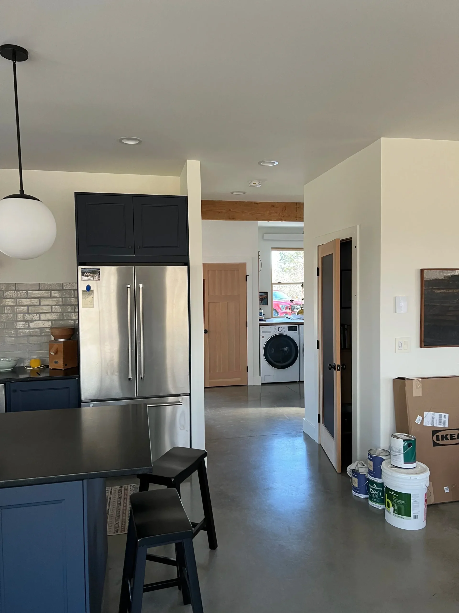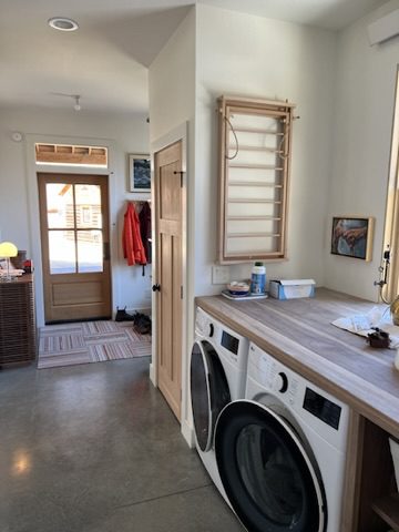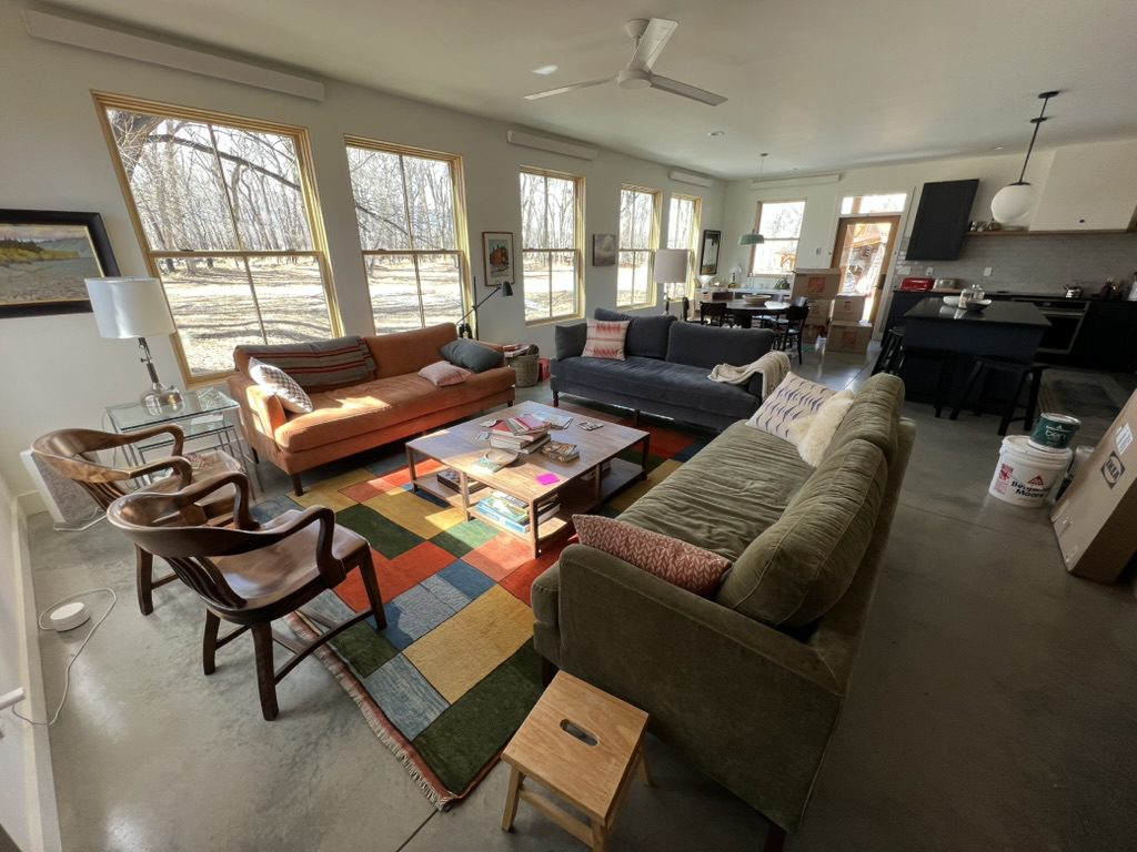 This home is nestled into a beatiful meadow overlooking grass, trees, and fields beyond. Featuring a polished slab-on-grade concrete floor, all-electric design with solar panels, 3 bedrooms, and 2.5 bathrooms. High-grade windows, custom built-ins and tile work brought this home across the finish line.